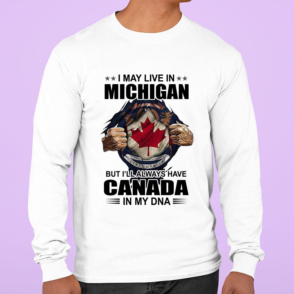 I May Live In Michigan But Ill Always Have Canada In My Dna shirt, Hoodie, Sweater, Longsleeve T-Shirt For Men and Women